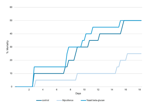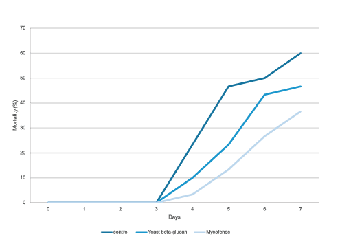 Through advanced challenge testing with shrimp and salmon, this product has been proved effective to significantly reduce mortality related to both viral and bacterial infections.